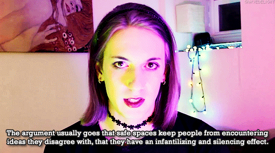 The argument usually goes that safe spaces keep people from encountering ideas they disagree with, that they have an infantilizing and silencing effect. nobodylesbian August 31, 2018 Published by nobodylesbian View all posts by nobodylesbian Published August 31, 2018